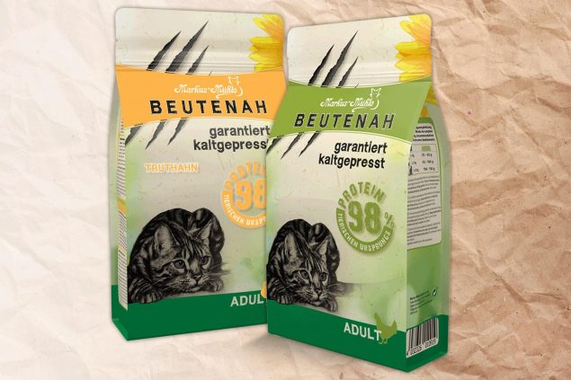 Für Katzen gibt es das hochwertige kaltgepresste BEUTENAH Trockenfutter in den Sorten „Huhn“ oder „Truthahn“. Das Trockenfutter enthält ausschließlich artgerechte Zutaten mit einem außergewöhnlich hohen Proteingehalt und besonders wenig Kohlenhydraten. Bei der Entwicklung des BEUTENAH Futters hat sich Markus-Mühle an der Natur orientiert und die Rezeptur der natürlichen Beute einer Katze nachempfunden. Denn in einer natürlichen Beute findet eine Katze alle lebensnotwendigen Nährstoffe für ein gesundes leben. Für einen 400 g Sack des Trockenfutters zahlt ihr statt 6,99€ nur noch 5,95€.