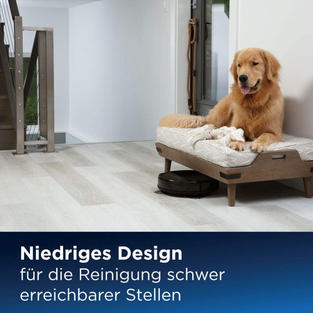 Der Bissell EV675 ist ein besonders günstiger und flexibler Saugroboter, den ihr vielseitig einsetzen könnt. Er säubert sowohl harte Böden als auch Teppiche selbstständig. Dabei kann er, weil er nur 8 cm hoch ist auch unter Schränke und andere Möbel fahren. Er fasst ein Staubvolumen von ca. 400 ml und kann nach einer kurzen Aufladezeit 100 Minuten lang saugen. Damit der Staubsauger beim Putzen nichts kaputt macht, verhindern integrierete Sensoren einen Zusammenstöße. Ihr müsst euch auch keine Sorge machen, dass der Staubsauger in den Keller fällt, da er Treppen durch moderne Sensortechnik erkennt. Mit der Fernbedineung könnt ihr die Reinigung kontrollieren und einstellen. Das 3-Stufen-Reinigungssystem mit doppelter Randbürste, rotierender Bürstenwalze und starker Saugkraft entfernt Tierhaare und andere Verschmutzungen von eurem Boden. Ihr bekommt diesen Staubsauger bei Idealo.de für nur 214€!