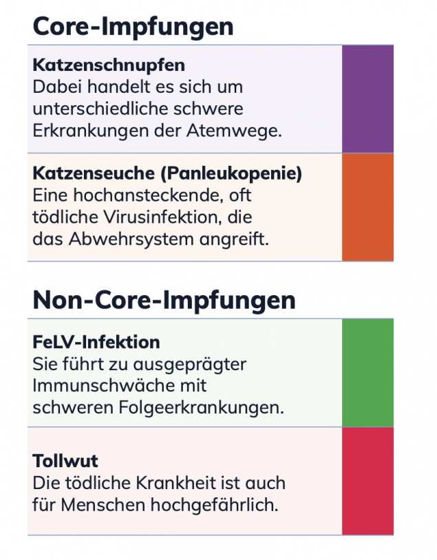 Sprechen Sie mit Ihrer Tierärztin oder Ihrem Tierarzt, welche Impfungen Ihre Samtpfote benötigt und lassen Sie sich zu adjuvansfreien und besonders katzenfreundlichen Impfstoffen beraten.