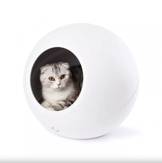 Das Cozy House von PetTec ist mehr als nur eine futuristisch aussehende Katzenhöhle. Das Pet House ist nämlich mit einer intelligenten Klimatisierungstechnik ausgestattet! An besonders heißen Sommertagen könnt ihr den Innenraum angenehm abkühlen und im Winter gemütlich aufheizen. Mithilfe einer WLAN-Verbindung könnt ihr das Katzenhaus auch aus der Ferne steuern. Dazu benötigt ihr lediglich die kostenfreie Petkit-App. Die App ermöglicht euch nicht nur die Einstellung der Temperatur, sondern informiert euch auch darüber, wie oft und wie lange sich euer Liebling in der Höhle aufhält.