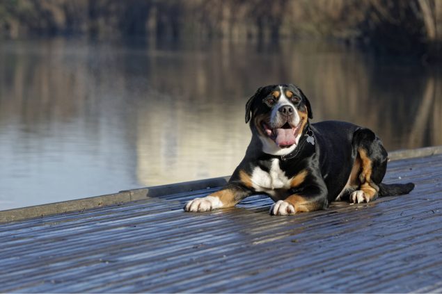 Der Große Schweizer Sennenhund ist mit einer Schulterhöhe von bis zu 72 Zentimetern der größte unter den Sennenhunden. Er kann zwischen 45 Kilo und 65 Kilogramm schwer werden. Sein Fell ist kurz und stockhaarig rau. Große Schweizer Sennenhunde sind imposante Erscheinungen und echte Naturburschen. Sie brauchen es geradezu, draußen unterwegs zu sein und Aufgaben zu erfüllen. Dabei sind sie nicht wählerisch. Solange sie mit ihren Menschen zusammen sind, sind sie zu allen Schandtaten bereit.