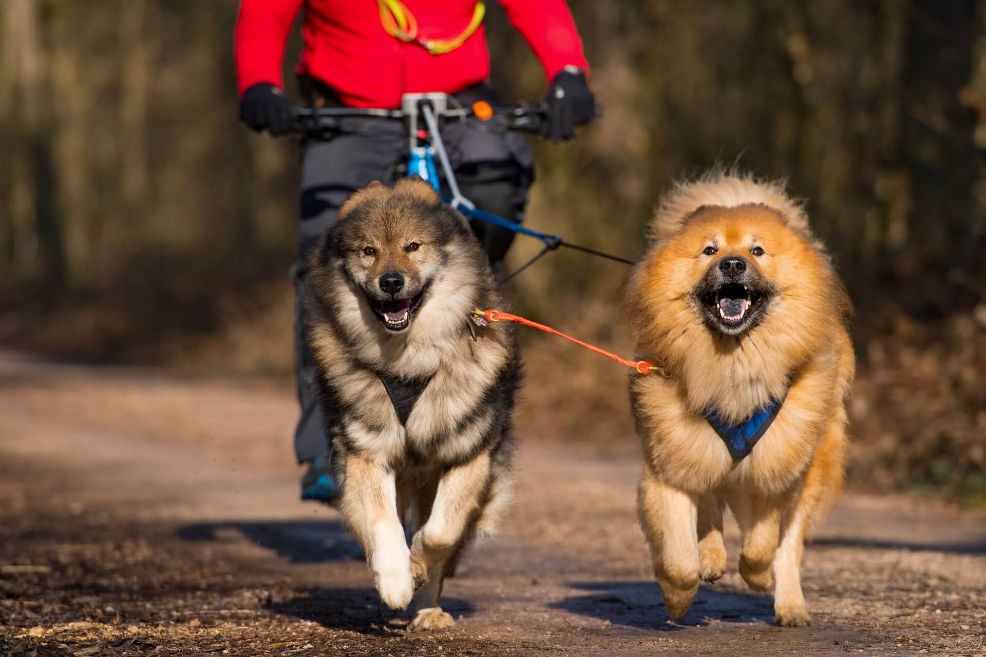- Gewicht: Experten empfehlen, dass ein Hund beim Bike-Jöring mindestens 17 Kilogramm auf die Waage bringen sollte, um seinen menschlichen Partner ziehen zu können, ohne dabei selbst überlastet zu werden. Darüber hinaus sollten Radfahrer plus Rad gemeinsam nicht mehr als das Vierfache des ziehenden Hundes wiegen. Diese Faustregel schließt zu unausgewogene Partner von Vornherein aus.