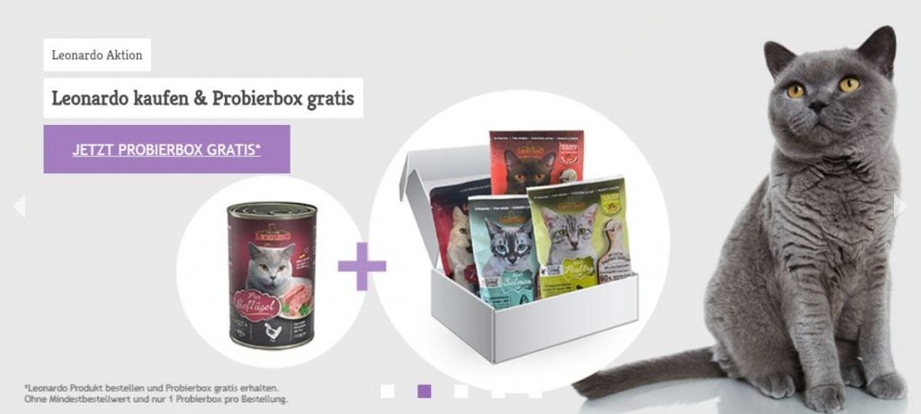 Einige Katzenfutter Hersteller erheben eine Portogebühr. Meist ist dann im Gegenzug das Probenpaket etwas umfangreicher. Es lohnt sich aber immer! Bei vielen Anbietern bekommt ihr neben den Futterproben noch ein paar Gutscheine beigelegt, die ihr nicht direkt auf dem besten Weg in den Müll werfen solltet. Bei einigen Anbietern gab es Gutscheine oder 25% Nachlass ab 30€ Mindestbestellwert. Zusätzlich gibt es allerlei Nebenprodukte, die ebenfalls beworben werden, irgendwie müssen sich die Proben ja finanzieren – das sollte euch aber nicht weiter stören.