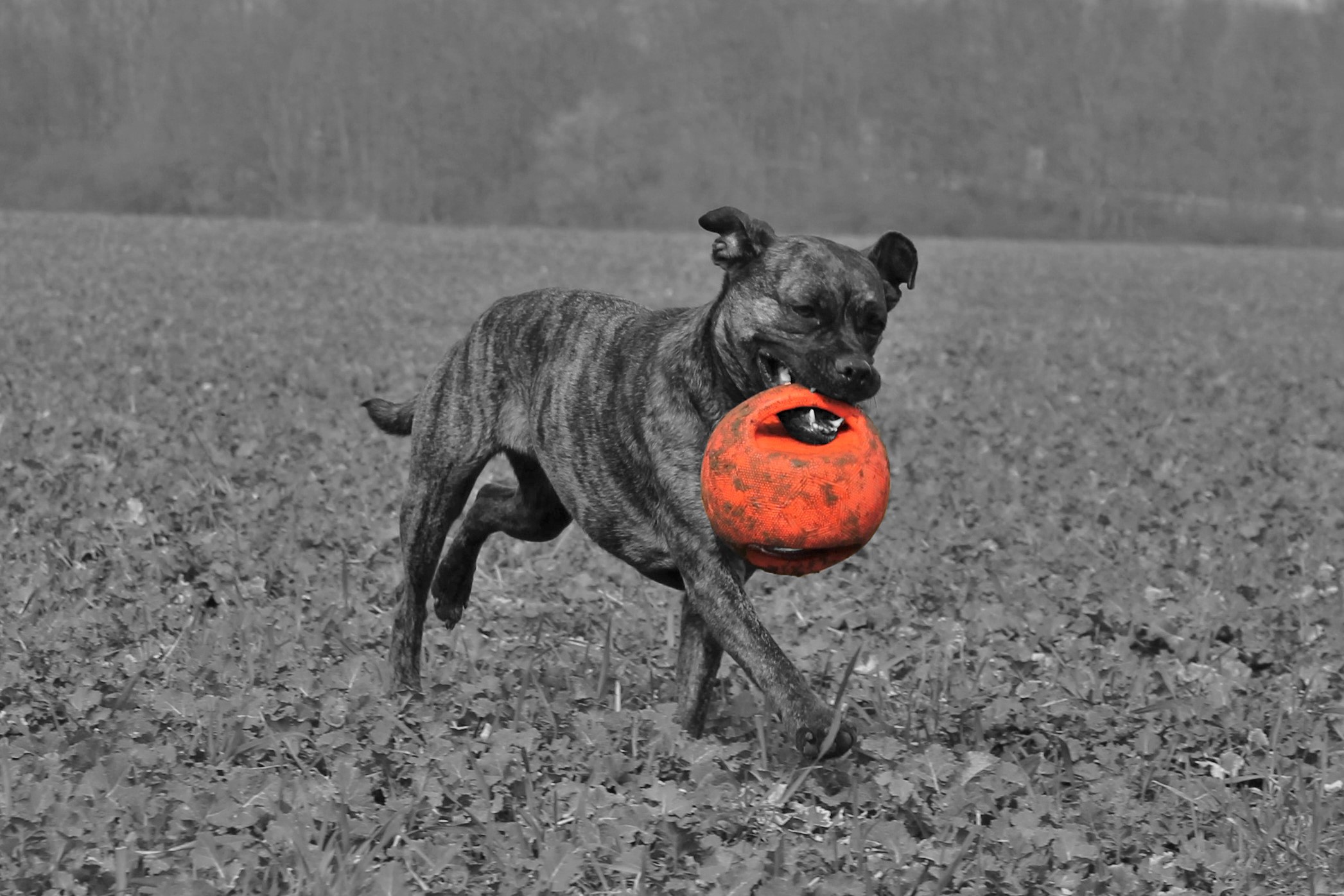 Einmal geworfen entfacht sich sein 4jähriger Sportsgeist: Er rennt den orange-schwarzen Signalfarben zielstrebig hinterher. Stöcke und Bälle in gedeckten Farben übersieht er manchmal. Aufgrund der kontrastreichen Farbwahl lässt sich BOMBER Spielzeug jedoch auch im hohen Gras gut erspähen und wiederfinden. Einmal aufgespürt, apportiert Andalou den Tri Loop stolz und unbeschwert, schüttelt und kaut darauf rum ohne die robusten Materialien dabei zu zerlegen. Auch lässt sich ein Leckerli im offenen Ring-Inneren verstecken und auf diese Weise ein Suchobjekt gestalten.